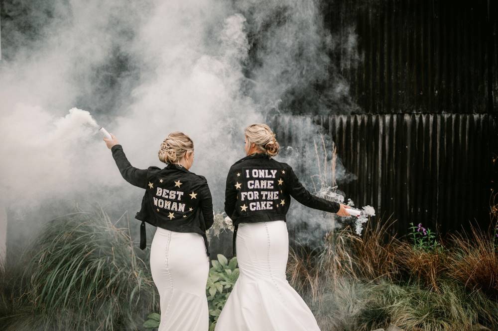 Recently featured in West Midlands Wedding magazine, this sumptuous Autumn wedding photoshoot will be guaranteed to get you in the mood for cosy barn weddings, fairy lights, candles and all the cake! Oh and lets not forget these super cool personalised wedding leather jackets! Let's get this party started…