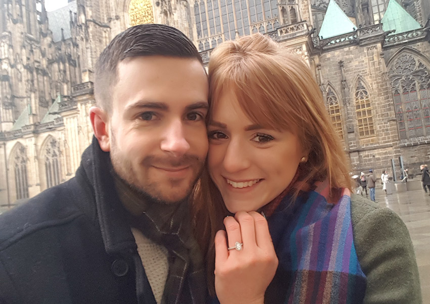 So on the Sunday off we went on a walking tour of Prague with a guide and a small group of other people of different nationalities. The day turned out to be a bit dreary but the tour was brilliant. We headed up to Prague castle and the tour guide explained that there were some security checks first before we could go inside. So we got in the very long queue for only then my partner to decide he wanted a picture infront of the gates. I told him we could get one after because we'll lose our place in the queue but no he was very insistent. So after being the stubborn person that I am I gave in and walked up to the castle gates. I turned round and the next minute he's on one knee with this stunning ring in his hand. I didn't listen to a word he said because I was so overwhelmed and all I could hear were people clapping and cheering. We then had to rejoin the tour for another 10 minutes which obviously went over my head.
